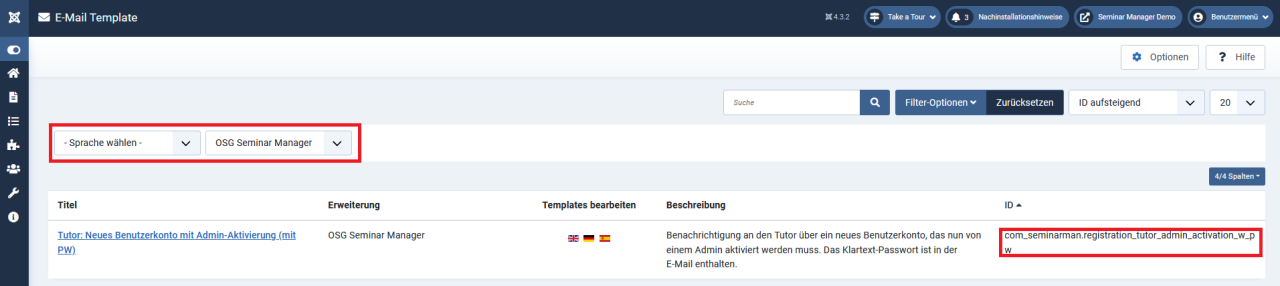 Das E-Mail wird im Fall der Tutor-Registrierung im Frontend gesendet. Das Template dafür installieren Sie am gleichen Ort wie die Benutzerrollen.