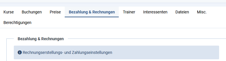 Eine Anleitung zur Erstellung von Vorlagen von Rechnungen und deren Zuordnung zu Kursen stellen wir Ihnen hier zur Verfügung: Rechnungsvorlagen
